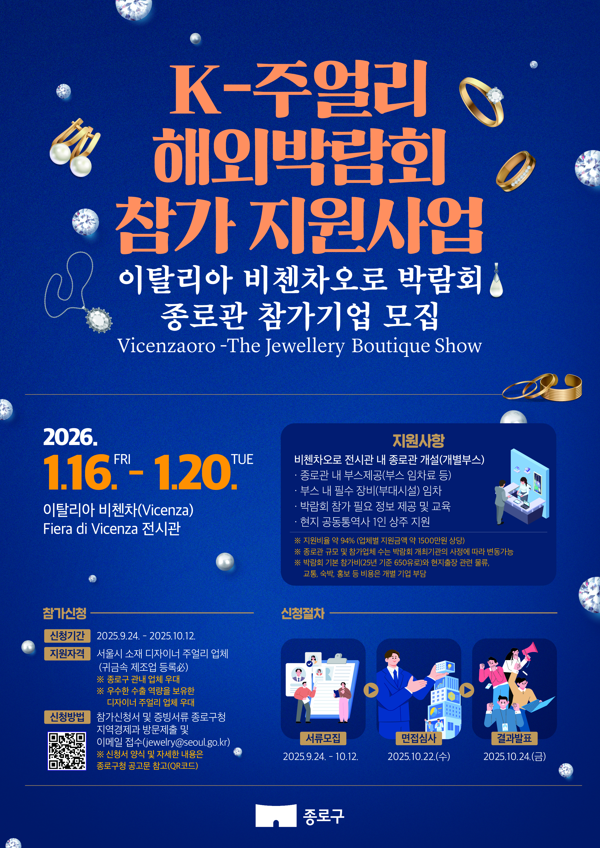(정보공유) 「K-주얼리 해외박람회 참가 지원사업」-2026 이탈리아 비첸차오로 박람회- 종로관 참가기업 모집공고