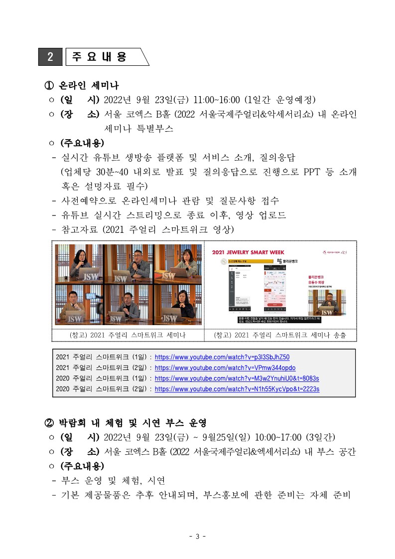 서울국제주얼리&액세서리쇼 내 행사장에서 온라인 세미나, 부스로 운영됩니다.