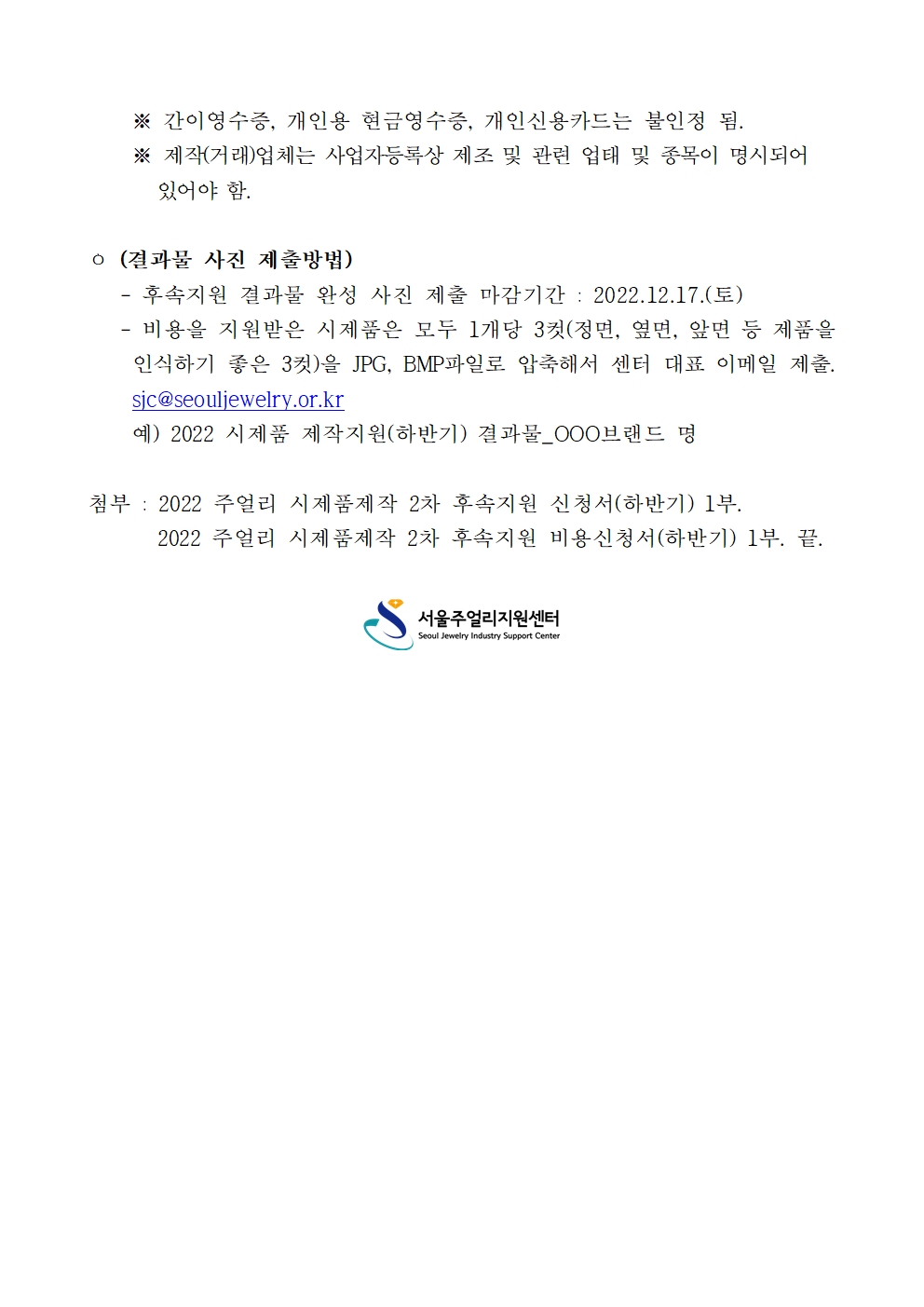 2022 주얼리 시제품제작 지원사업(하반기) 2차 후속지원 공고를 아래와 같이 안내드립니다.
