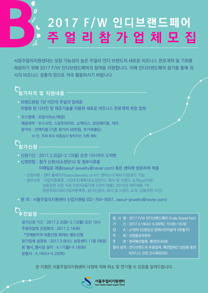 <2017 F/W 인디브랜드페어(Indie Brand Fair) 주얼리 참가업체 모집>