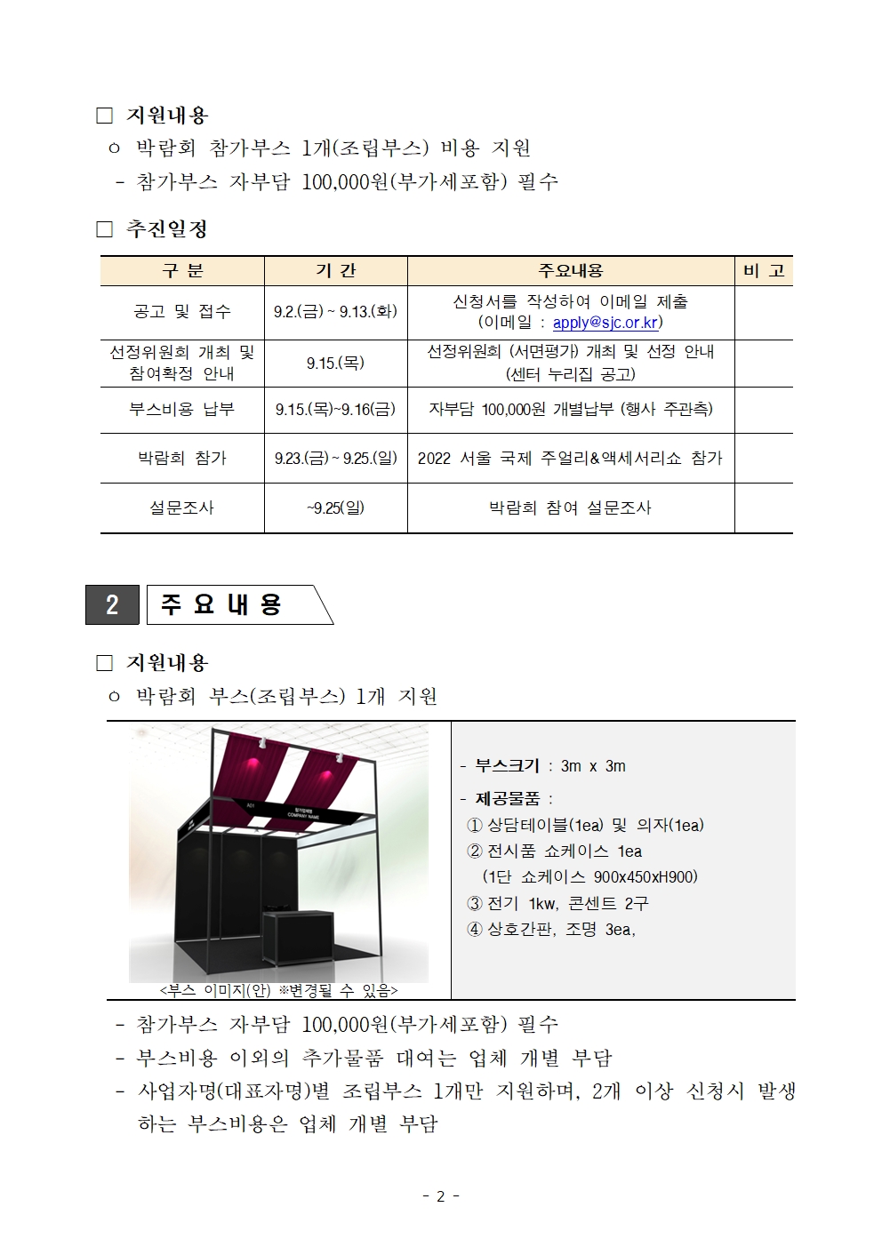 □지원내용 : 박람회 참가부스1개(조립부스) 비용지원