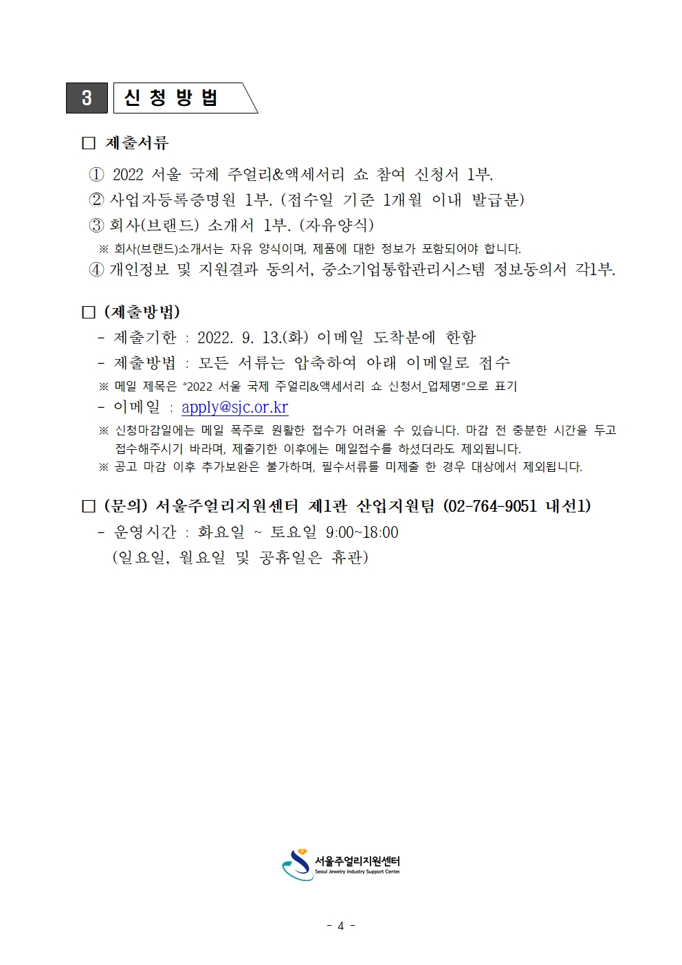 안녕하세요 서울주얼리지원센터입니다.