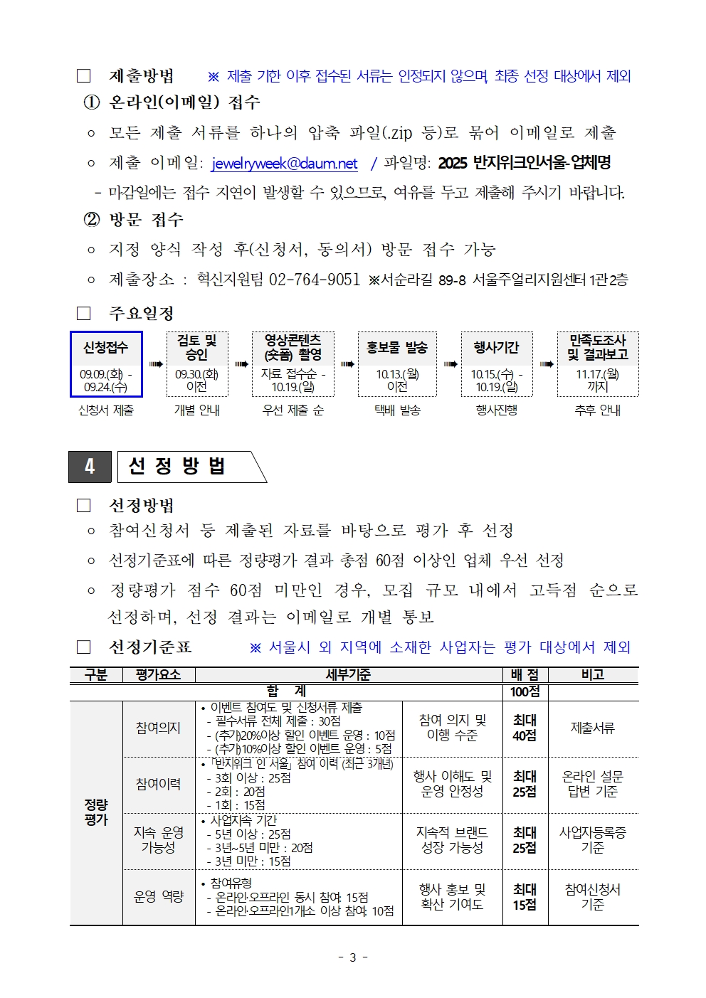■ 모집대상 : 10% 이상 할인 이벤트 운영이 가능한 오프라인 매장 또는 온라인 자사몰을 보유한 서울시 소재 주얼리 업체 (총 100개 업체 내외)