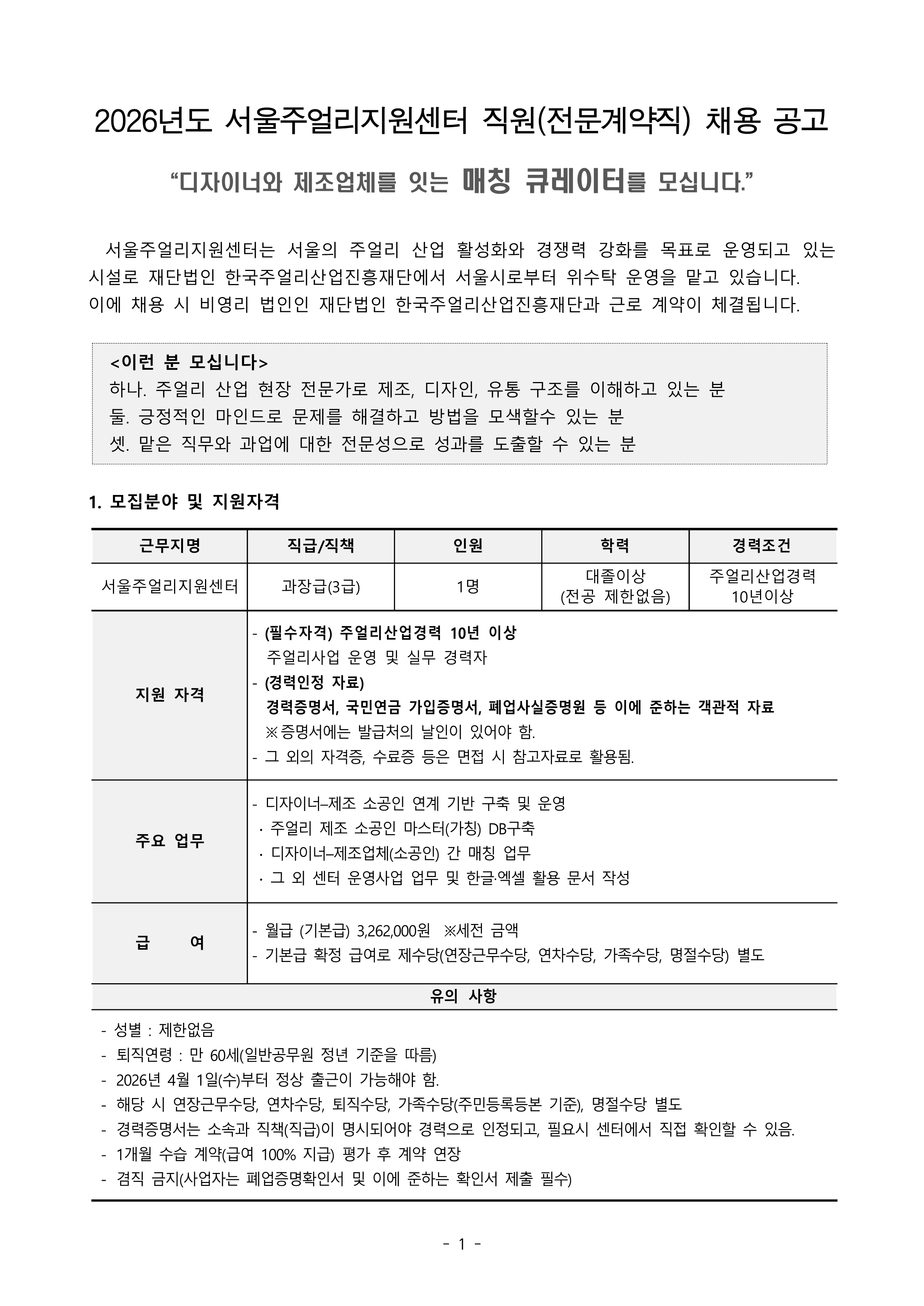 ※(공고) 2026년도 1차 서울주얼리지원센터 직원 채용 공고(과장, 3급, 전문계약직).pdf