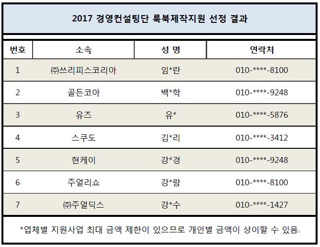 2017 경영컨설팅_룩북제작지원 선정업체(2차) 공지
