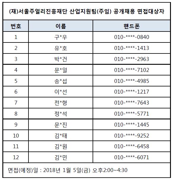 본 공지는 접수번호 순이며, 면접 순서는 접수역순으로 부여됩니다.