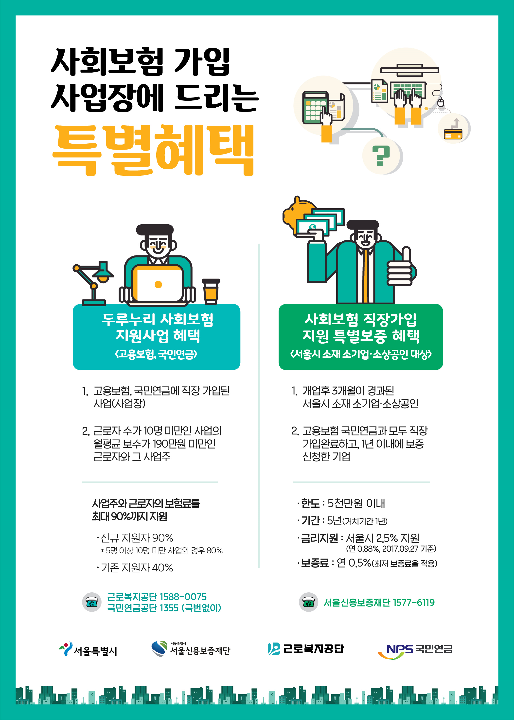 2. 사회보험 직장가입 지원 특별보증 혜택(서울시소재 소기업, 소상공인 대상)