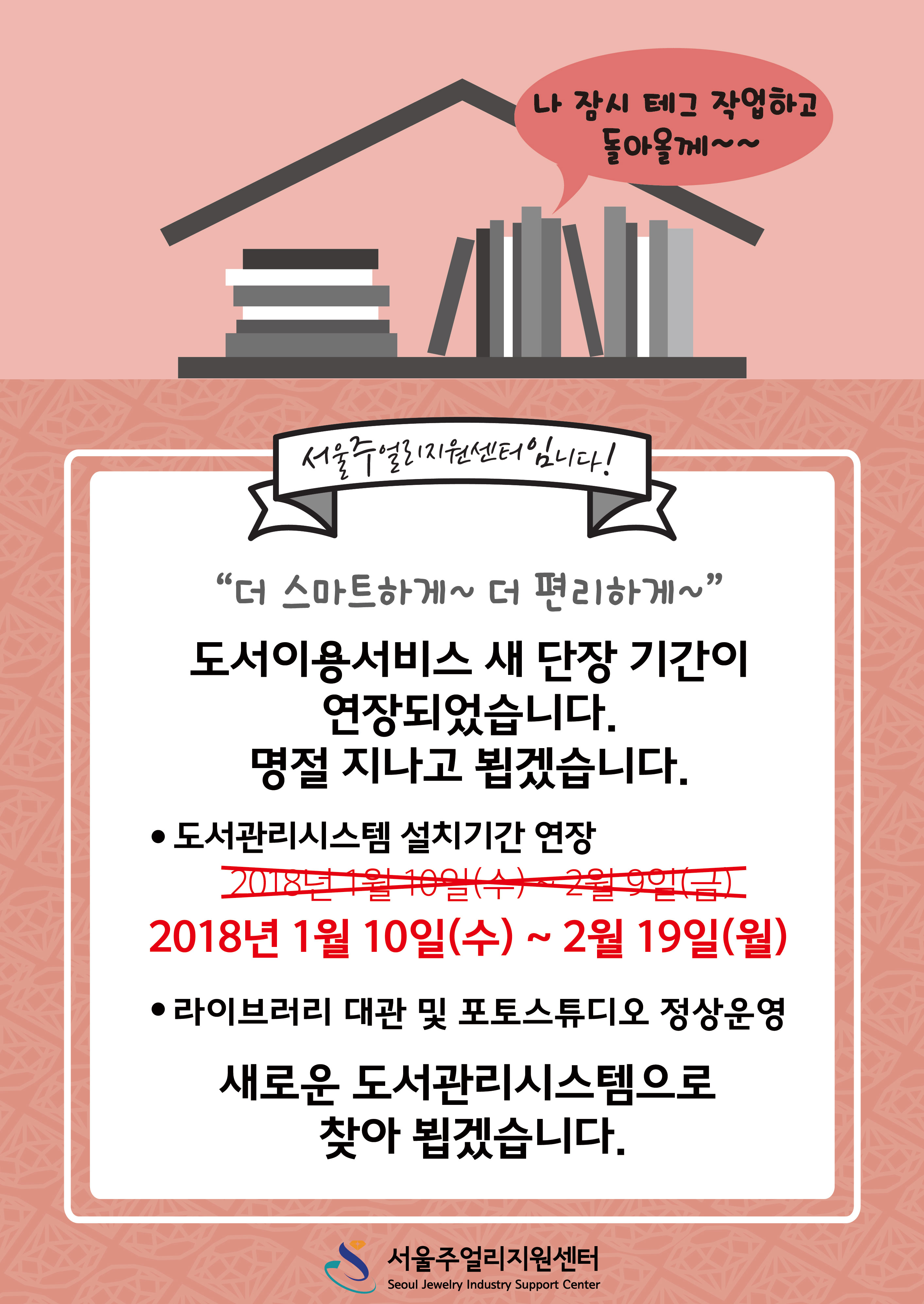 주얼리라이브러리 도서이용서비스 새단장 기간 안내(1월10일~2월19일)
