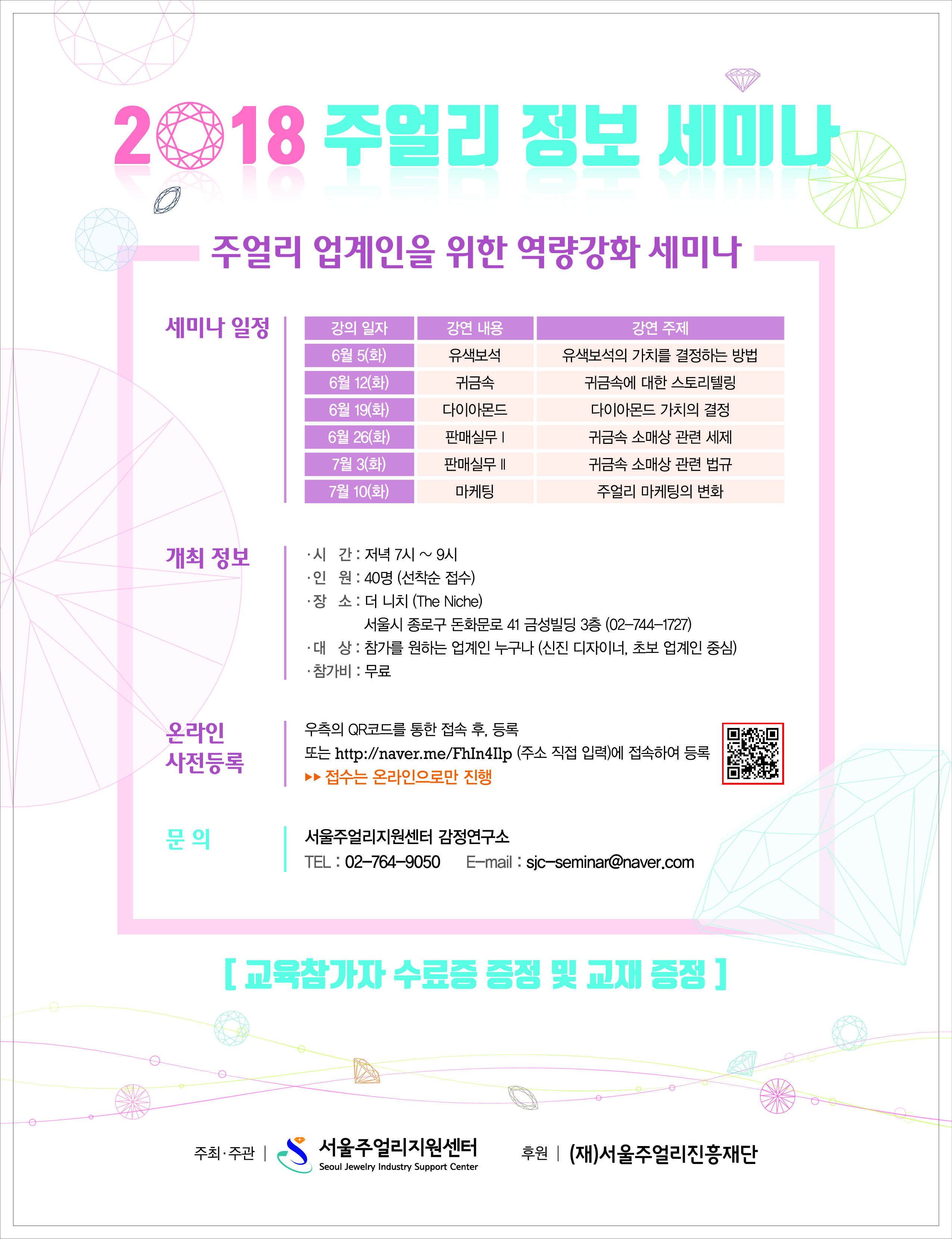 서울주얼리지원센터에서 개최하는 “2018 주얼리 정보세미나” 개최 안내입니다.