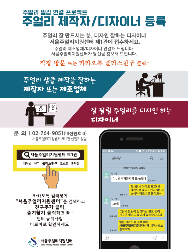 저희 센터에서는 주얼리 제조업체 / 디자이너를 연결을 위해 일감연결 프로젝트를 진행중에 있습니다.