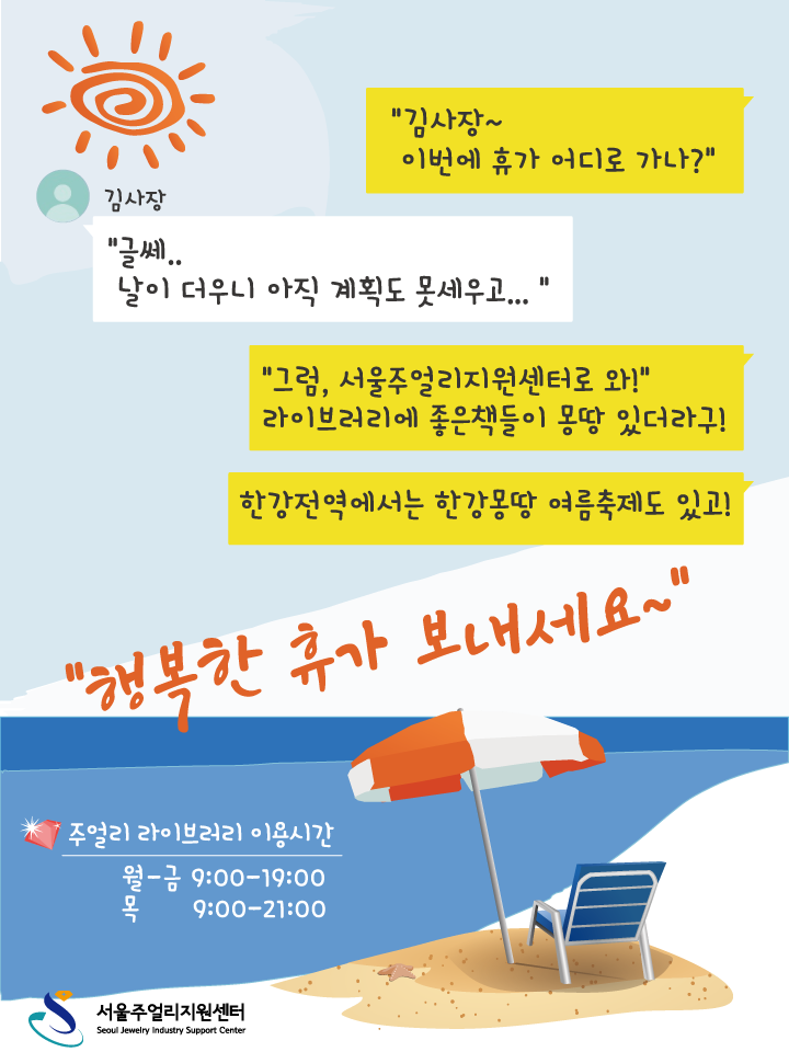 종로 주얼리 업계 휴가기간(8월1일~5일)에도 센터는 정상 운영함을 안내드립니다.