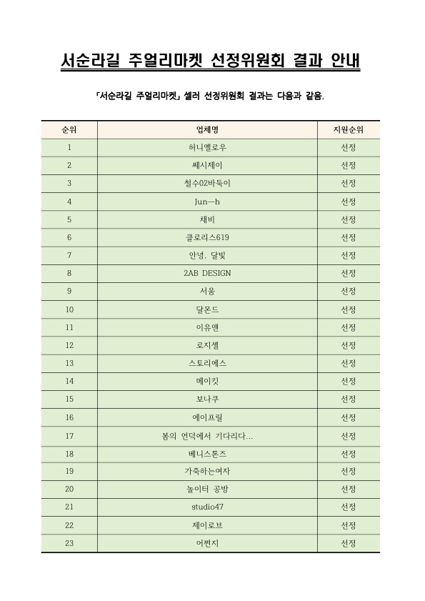 일에 진행한 선정위원회 결과를 공지드립니다.