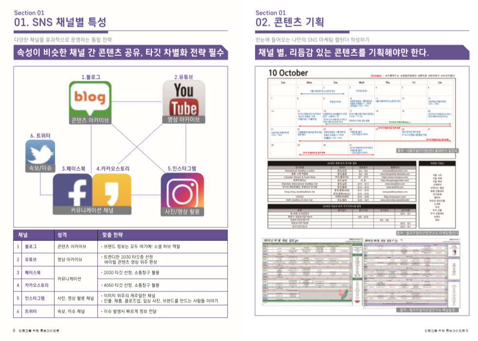 가이드 북은 빠르게 변화하는 디지털 시대적 성향과 트랜드를 반영하여, 주얼리 소규모, 창업자, 스타트업을 준비하는 사람들까지 브랜드 홍보 실무기법 등의 내용이 수록되어 있습니다.