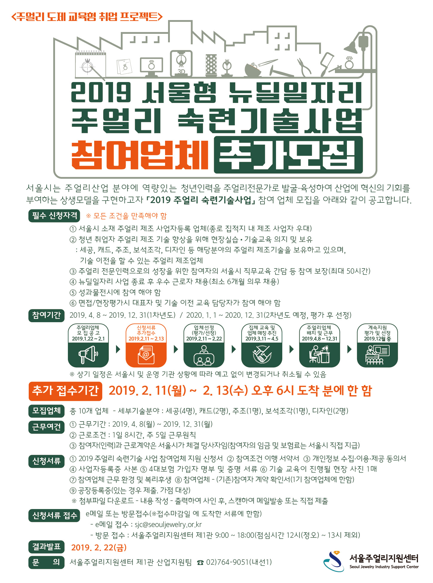 2019 서울형 뉴딜일자리 주얼리 숙련기술사업 참여업체 추가모집 안내