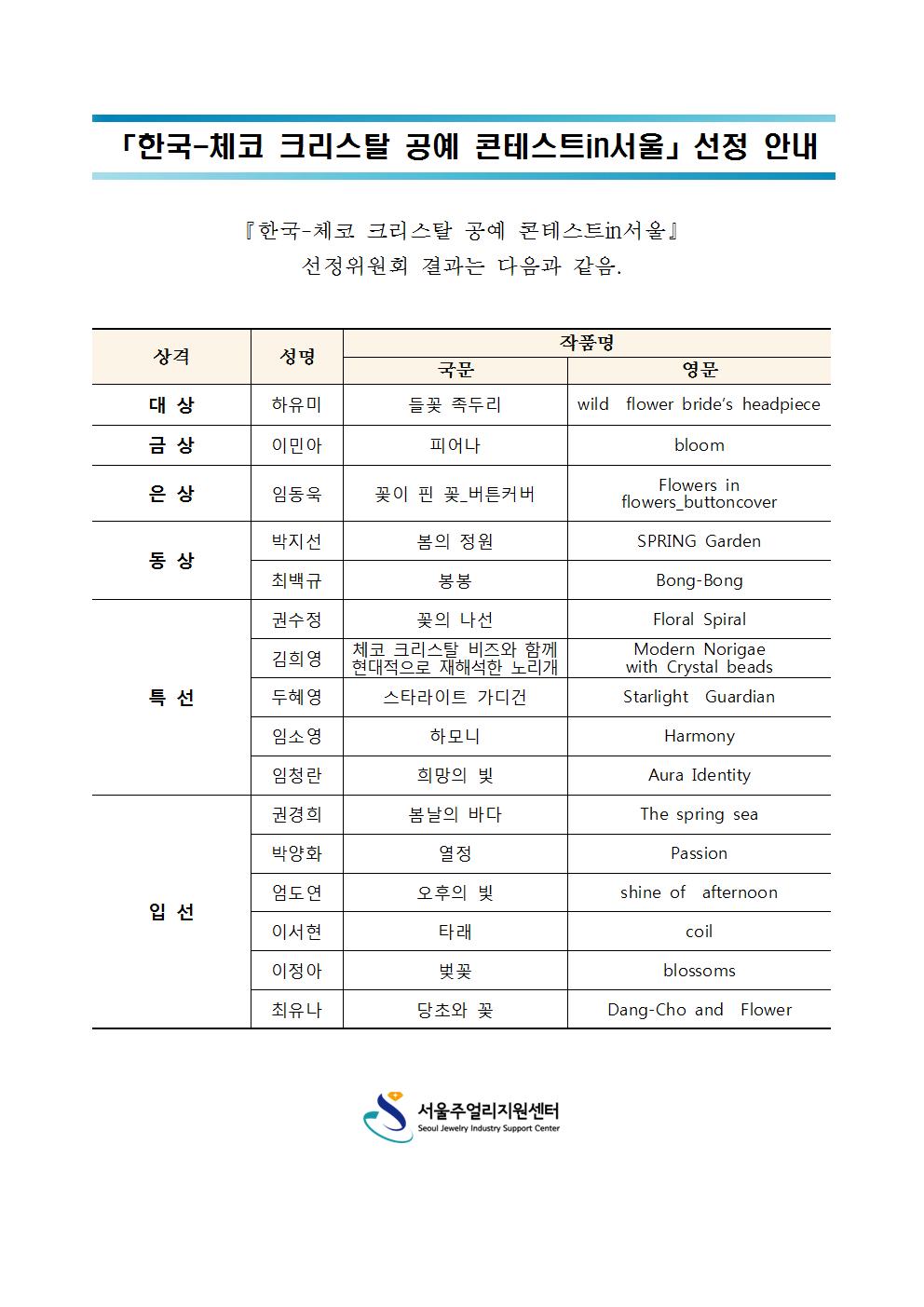 한국-체코 크리스탈 공예 콘테스트in서울에 많은 관심과 참여 감사드립니다.
