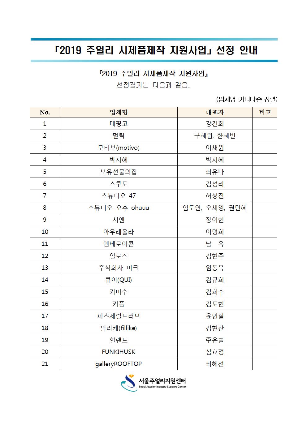 2019 주얼리 시제품제작 지원사업의 선정결과를 안내드립니다.