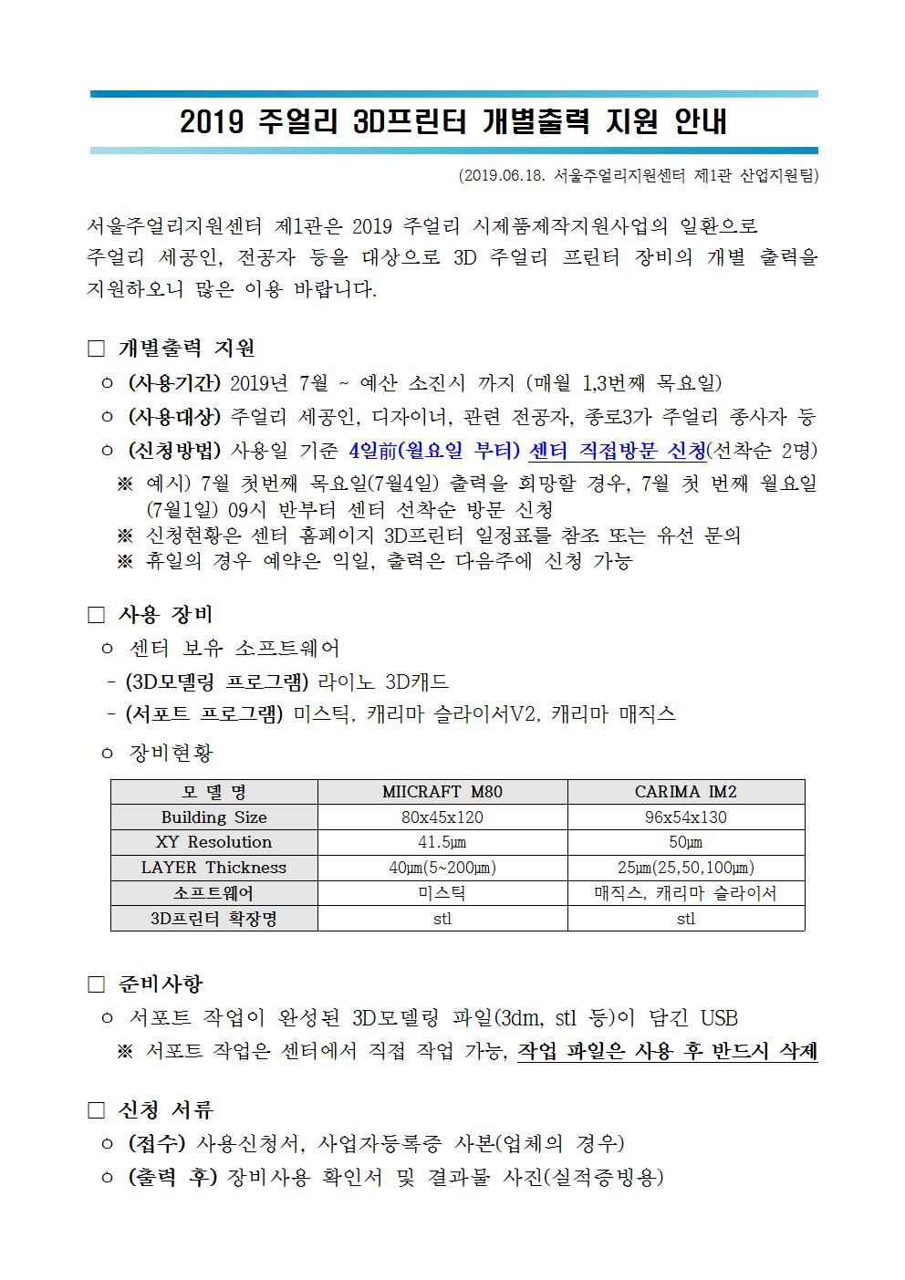 2019 주얼리 3D프린터 개별출력 지원 안내.pdf안녕하세요 서울주얼리지원센터입니다.