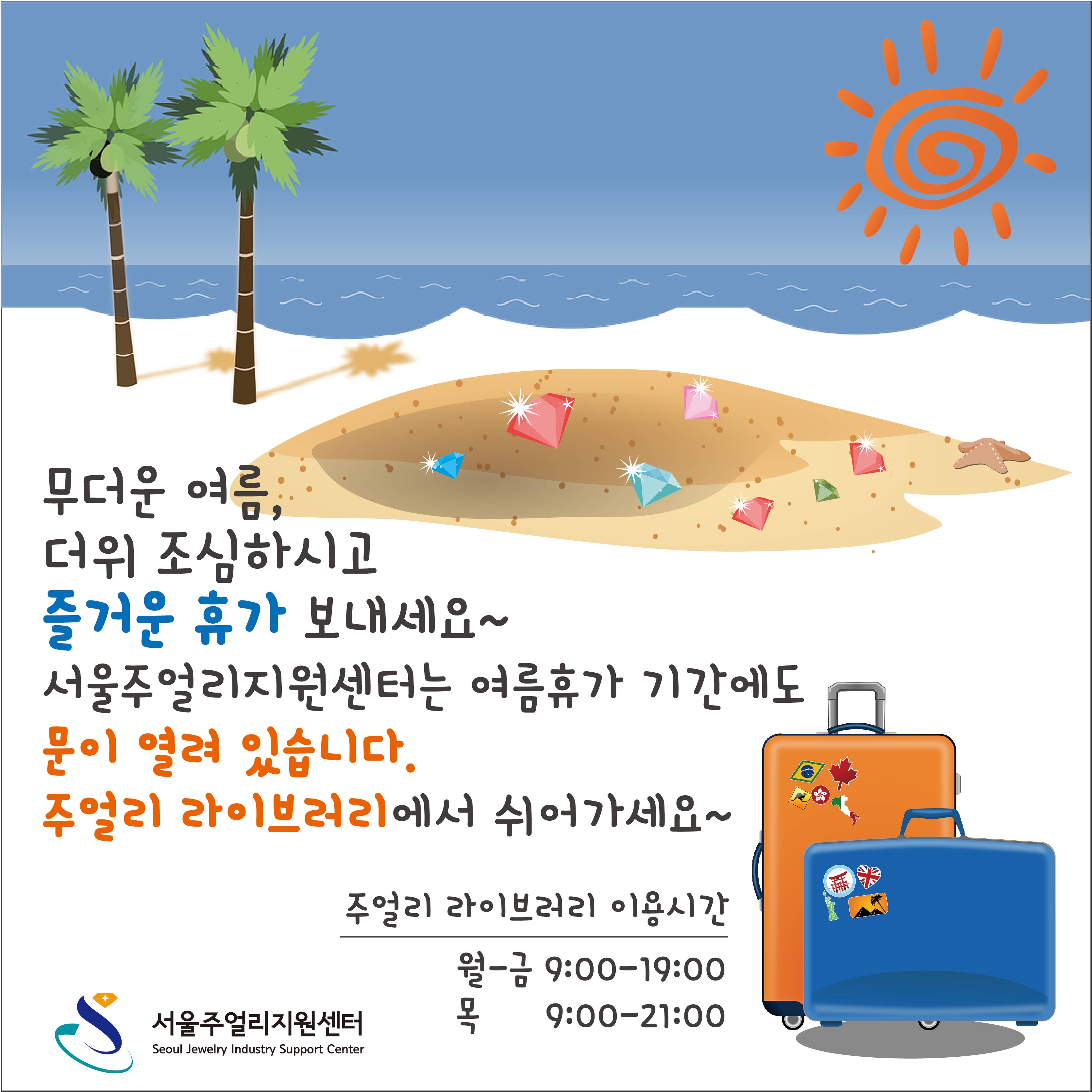 종로 주얼리 업계 휴가기간(7월31일~8월2일)에도 센터는 정상 운영함을 안내드립니다.