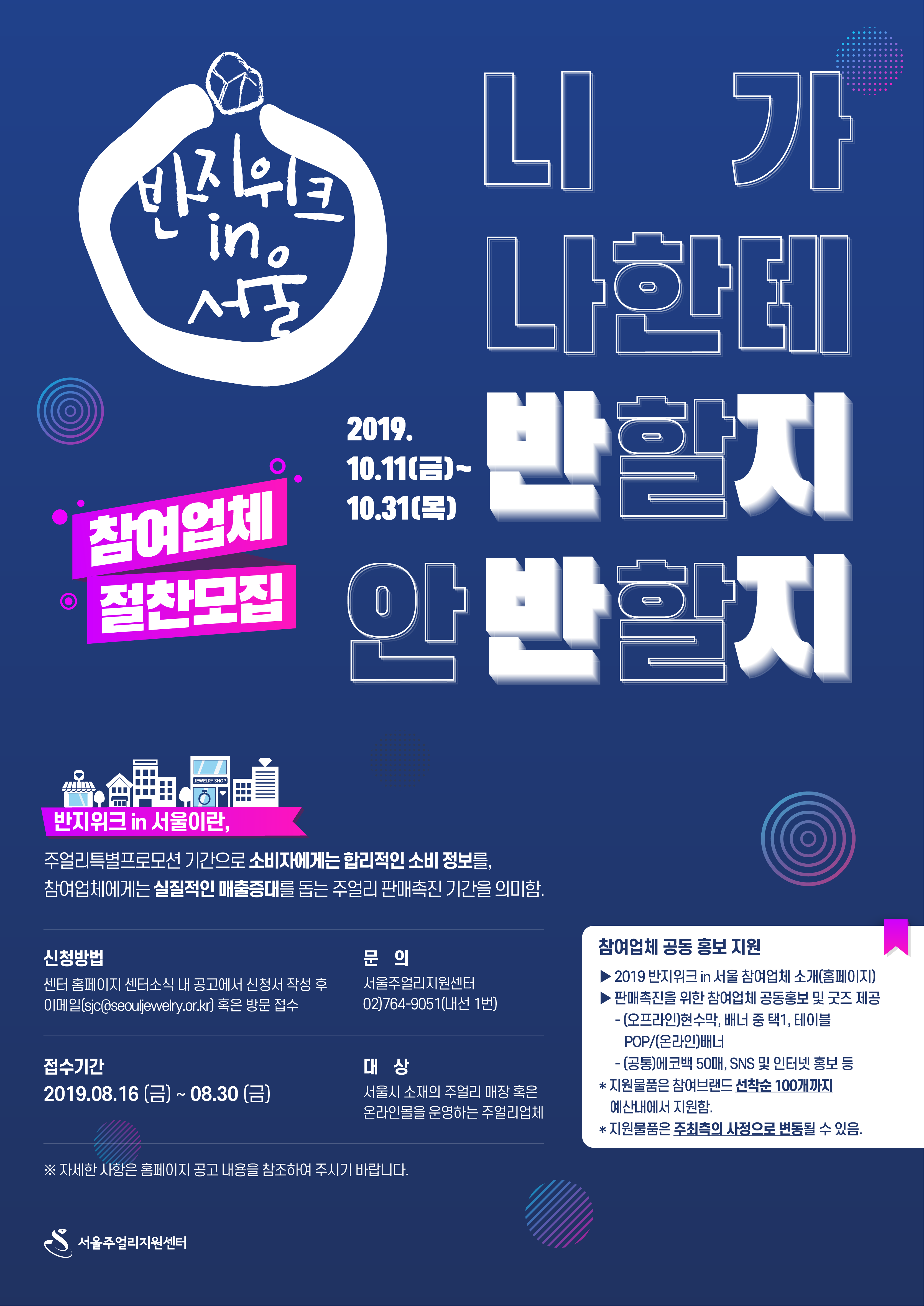 주얼리 특별프로모션 주간 「2019 반지위크 in 서울」참여업체 모집 공고