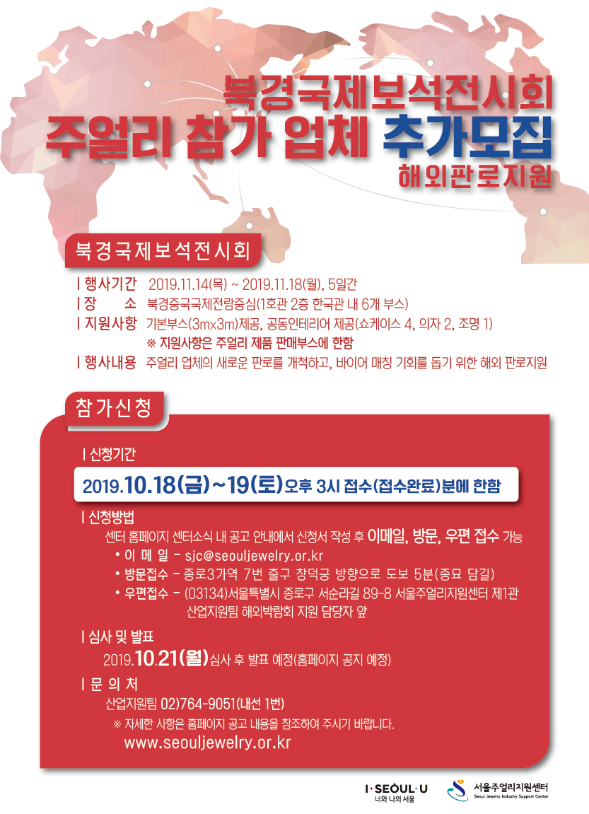 중국 북경에서 개최되는 2019 북경국제보석전시회의 추가모집공고 안내를 드립니다.