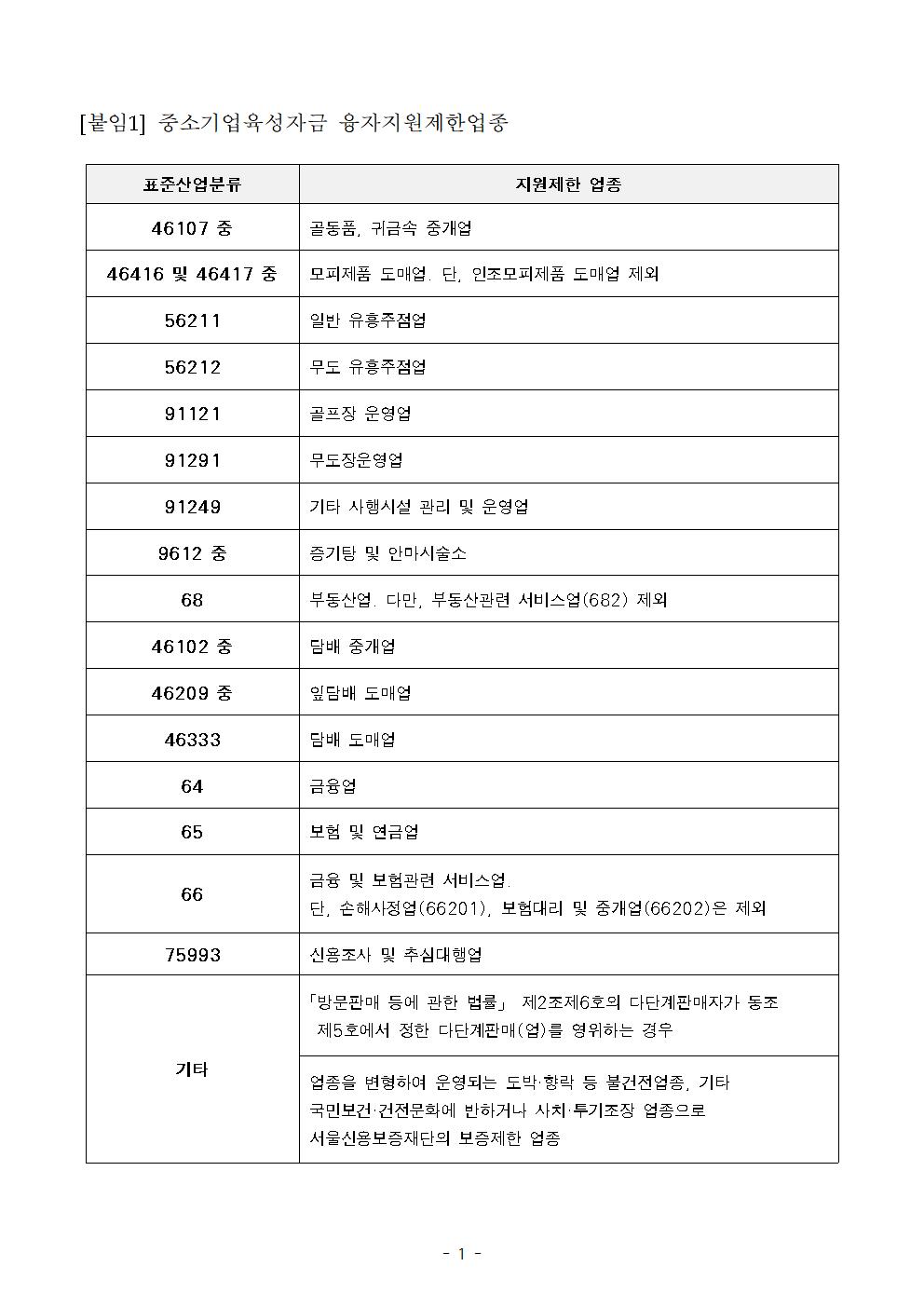 붙임2. 중소기업육성자금 융자지원제한업종.hwp