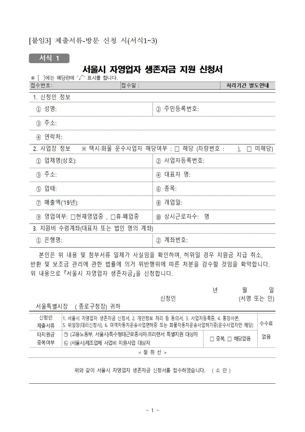 [붙임1]서울시 자영업자 생존자금 지원사업 공고문.hwp