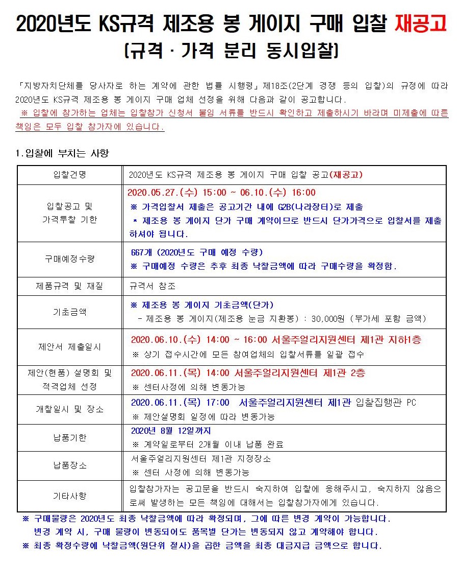 (재공고) 2020년도 KS규격 제조용 봉 게이지 구매 입찰 공고
