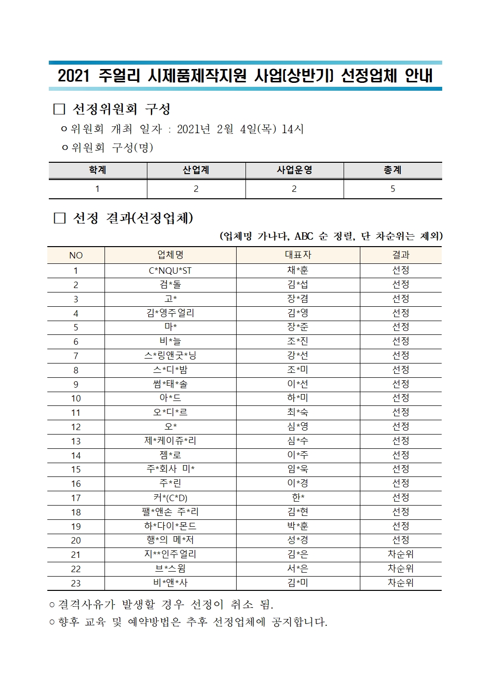 2021 주얼리 시제품제작지원(상반기) 선정위원회 결과 안내