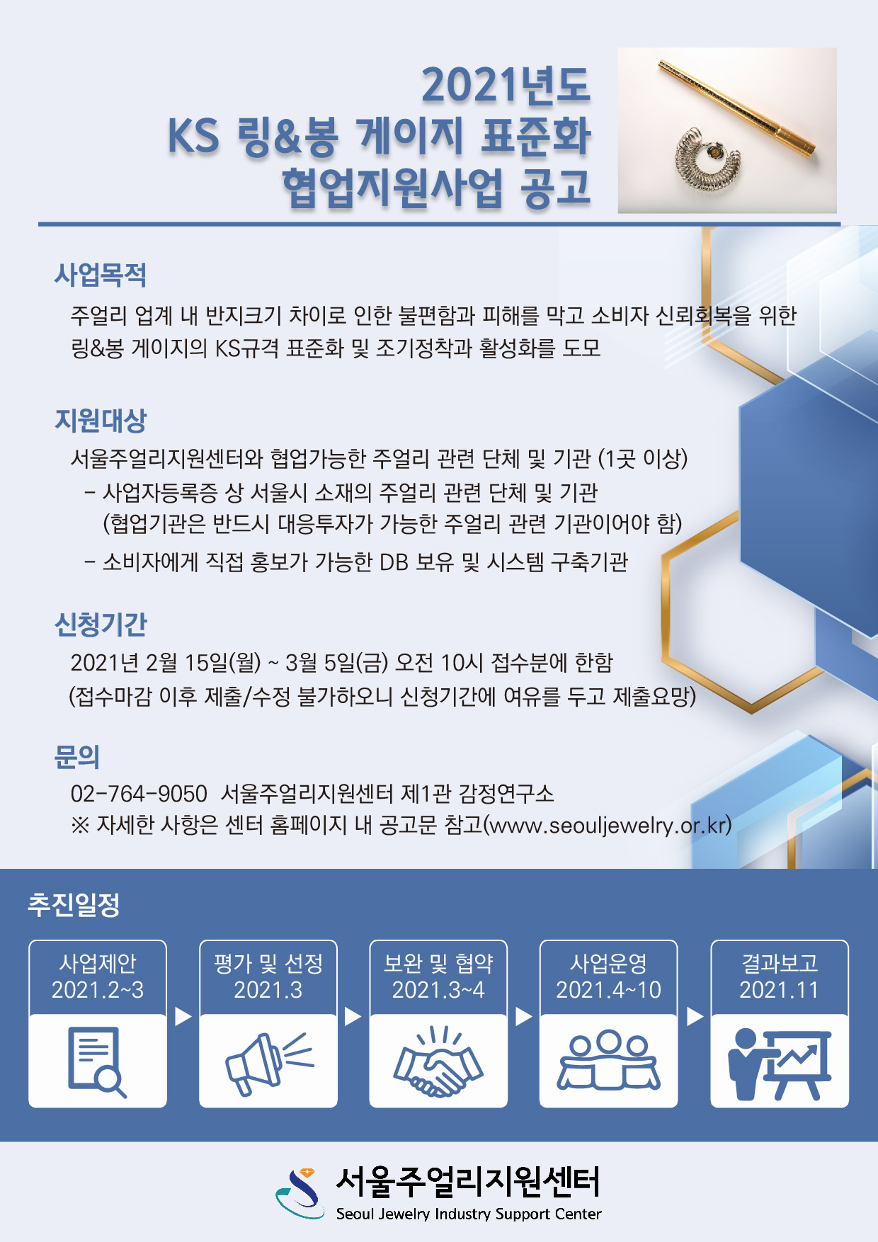 자세한 내용은 2021년도 KS 링&봉 게이지 표준화 협업지원사업 공고문 및 첨부된 관련 서식을 참고해 주세요!