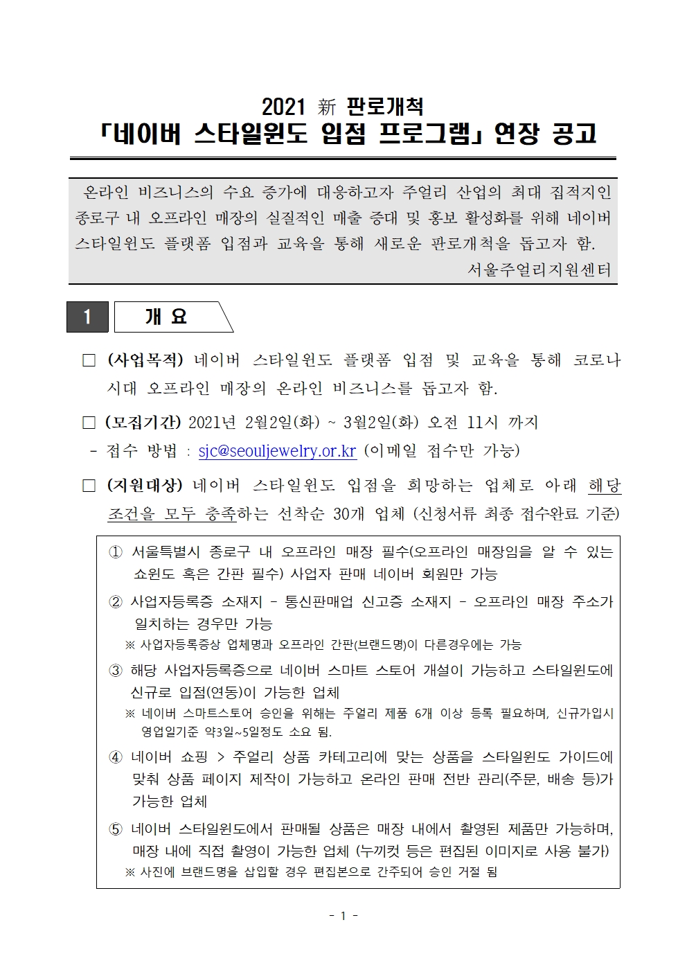 [공고-연장] 2021 新 판로개척「네이버 스타일윈도 입점」프로그램 공고]