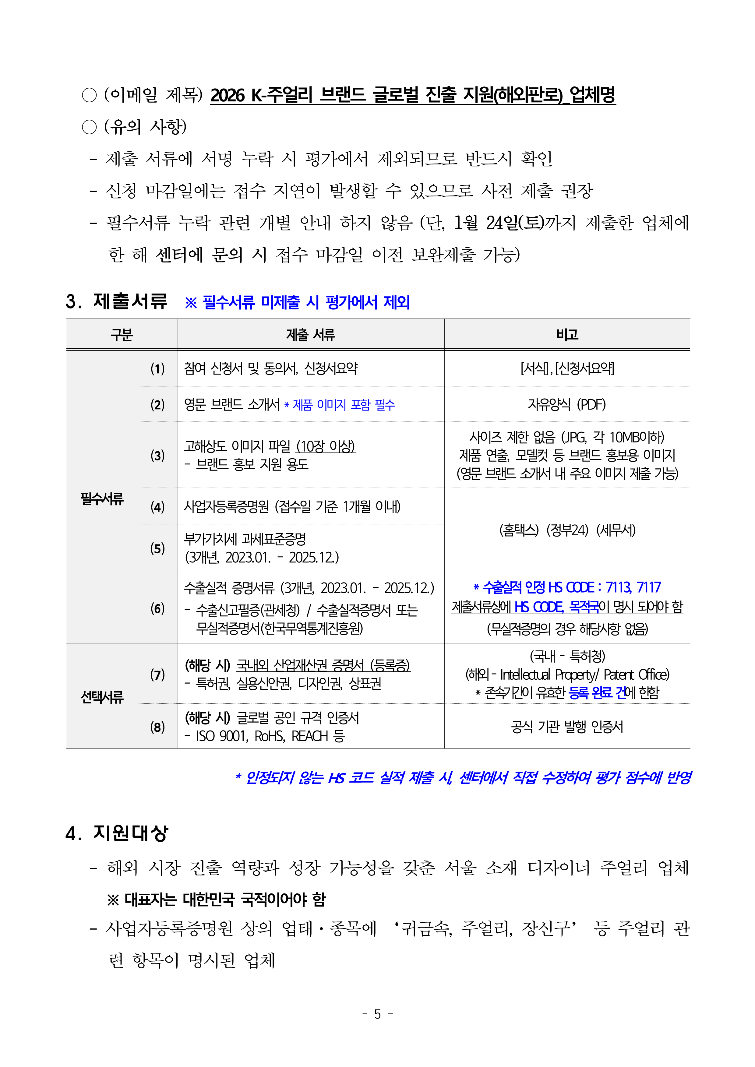 서울 소재 수출 유망 주얼리 브랜드의 많은 참여를 바랍니다.