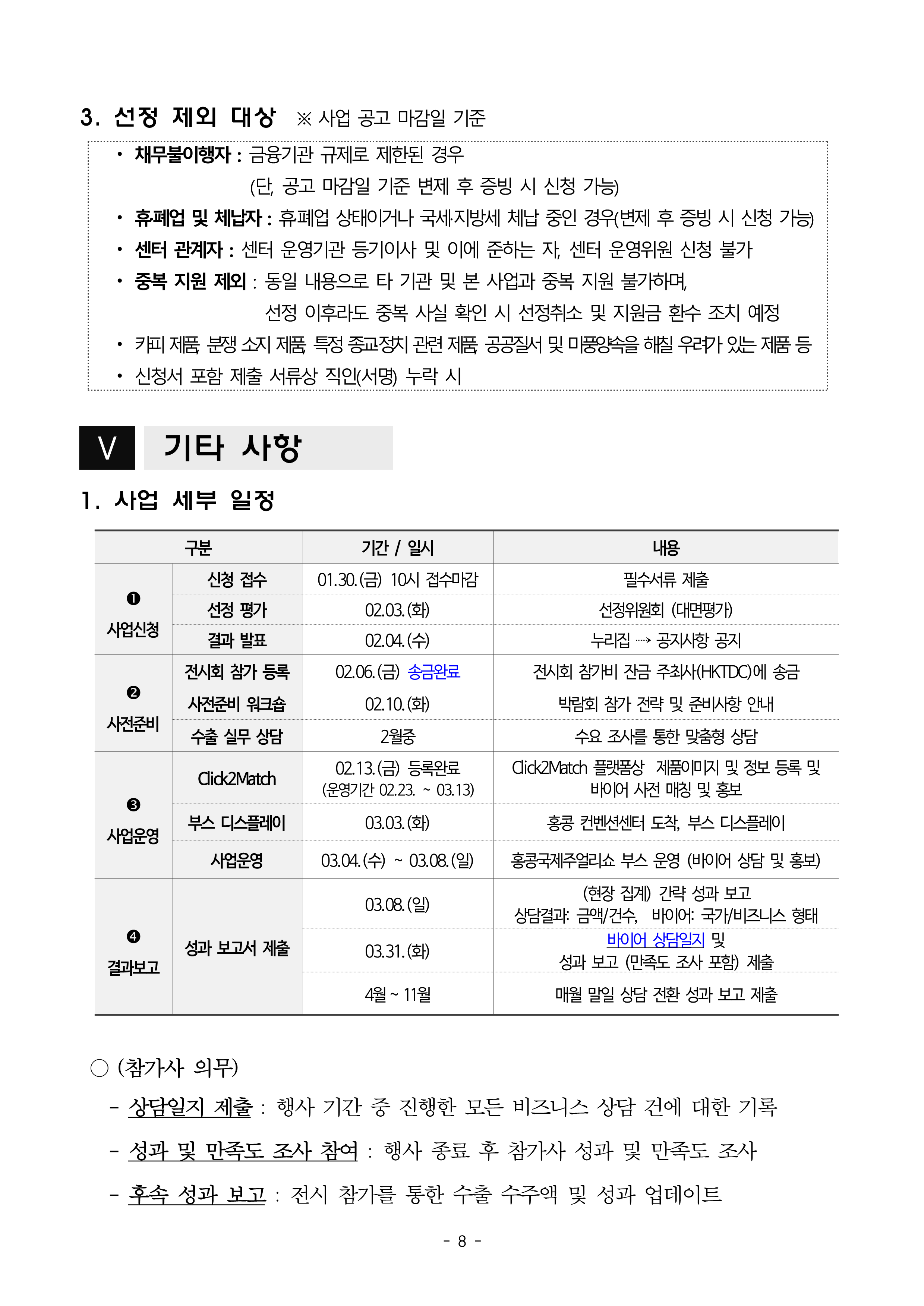 본 사업은 해외 바이어와의 실질적인 비즈니스 연계를 통해 수출 가능성을 높이고, 지속 가능한 해외 판로 기반을 마련하는데 목적이 있습니다.