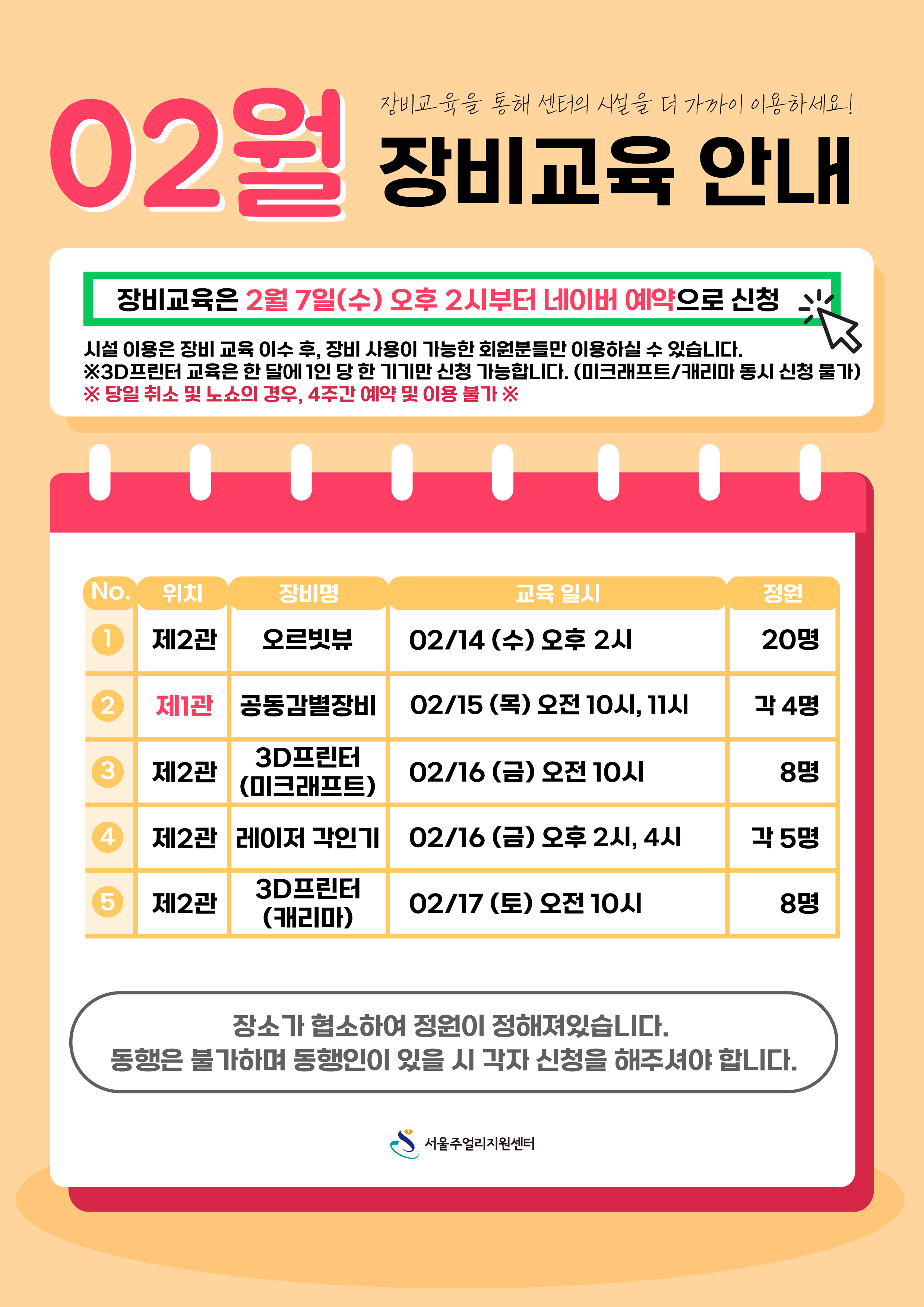 본 장비교육은 멤버십 회원가입자 중에서 해당 시설 이용을 원하는 회원 대상으로 진행됩니다.